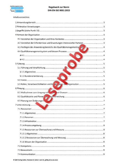 Die Nummerierung entspricht der zugrundeliegenden Norm DIN EN ISO 9001:2015. So kann eine Zuordnung zur Norm leicht realisiert werden.